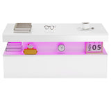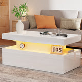 Modern White High Gloss Coffee Table – LED RGB Lights, 2 Drawers & Open Shelf