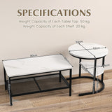 Featuring a faux white marble tabletop paired with a black metal frame, it adds a touch of modern elegance to any room. Made from durable hardwood and particle board, the set offers long-lasting strength and a smooth finish — perfect for living rooms, bedrooms, or lounges.