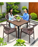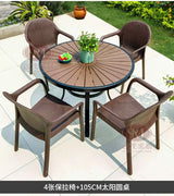 • Stylish Design: Features a round plastic wood table and rattan-style chairs, blending natural charm with a contemporary touch.