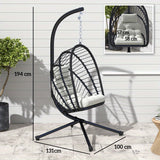 Crafted with a sturdy metal stand and durable PE rattan, this elegant swing chair adds a touch of luxury to your balcony, patio, garden, or living room. The soft cushioned seat and headrest offer exceptional comfort, making it perfect for reading, napping, or simply unwinding after a long day. πΏπβοΈ